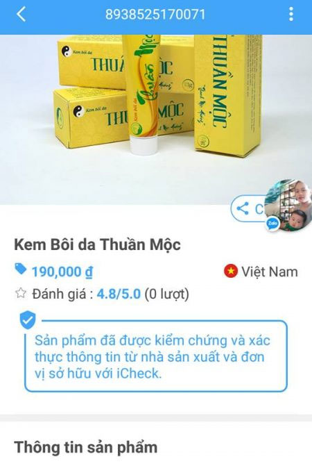 Từ tháng 3/2019 công ty TNHH Thanh Mộc Hương VN đã cấp mã vạch cho tất cả các sản phẩm trong số đó có kem da liễu Thanh Mộc Hương Thuần Mộc giúp khách hàng có thể check nguồn gốc được hàng chính hãng và hàng giả một cách dễ dàng.