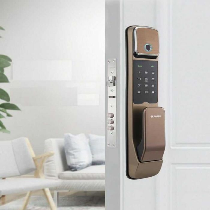 - Khóa cửa vân tay Bosch mở cửa bằng: Vân tay, mật mã, thẻ từ, chìa khóa cơ
